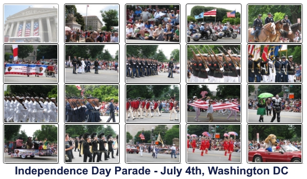 అంతేగాకుండా, ఈ రోజు ఉదయం 11.45 కు పరేడ్ కూడా జరుగుతుంది. చారిత్రకమైన కాన్స్టిట్యూషన్ అవెన్యూ మరియు వాషింగ్టన్, డి.సి.లోని స్మారక చిహ్నాలు, అమెరికా యొక్క అతిపెద్ద మరియు ఉత్తమ స్వాతంత్ర దినోత్సవ పరేడ్కు, అనుకూలమైన పరిస్తితులు  కల్పించాడానికి, కారణమయ్యాయి. అమెరికా పుట్టినరోజున, దేశ రాజధాని లో జరిగే సంబరాల కంటే, గొప్ప ఉత్సాహం ఎక్కడా లేదు!