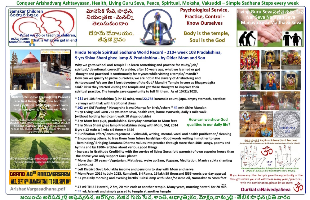 Hindu Temple Spiritual Sadhana World Record - 210+ wk 108 Pradakshina, 9 yrs ghee lamp Pradakshina (General)